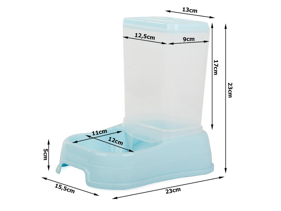 Практична и компактна автоматична хранилка с диспенсър за храна и вода, създадена да улесни храненето на вашия домашен любимец. Този продукт е подходящ както за кучета, така и за котки, осигурявайки лесен достъп до храна и вода.