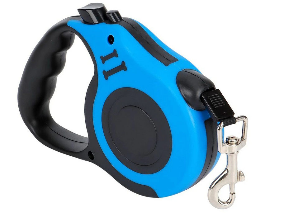 **Здрава автоматична каишка с ключалка за кучета – синя, 5м**